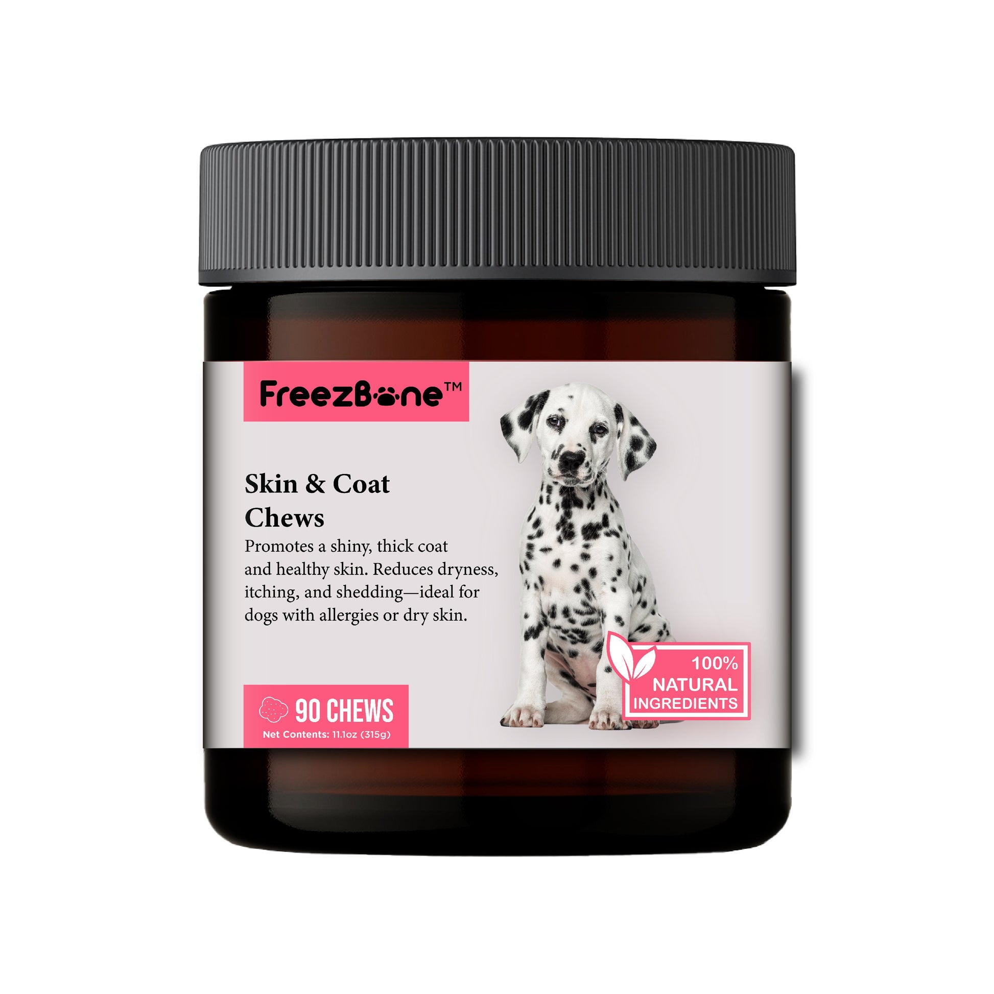 Freezbone Skin & Coat Chews are designed to promote a shiny, tick-free coat and healthy skin while reducing dryness, itching, and shedding. Perfect for dogs with allergies or dry skin, these chews are packed with nutrients that support your dog’s skin health and coat shine!
