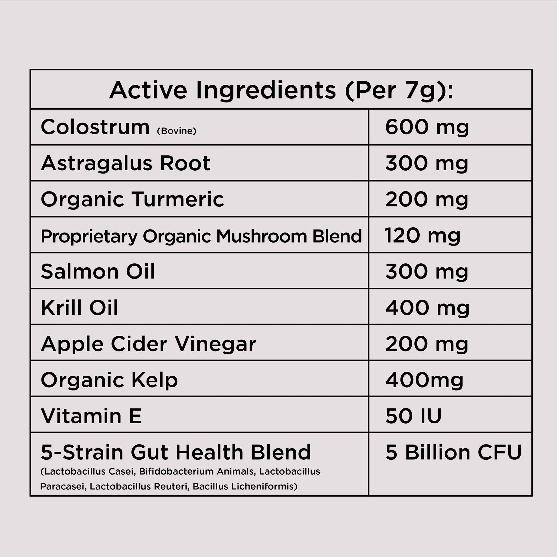 - Colostrum – 600 mg