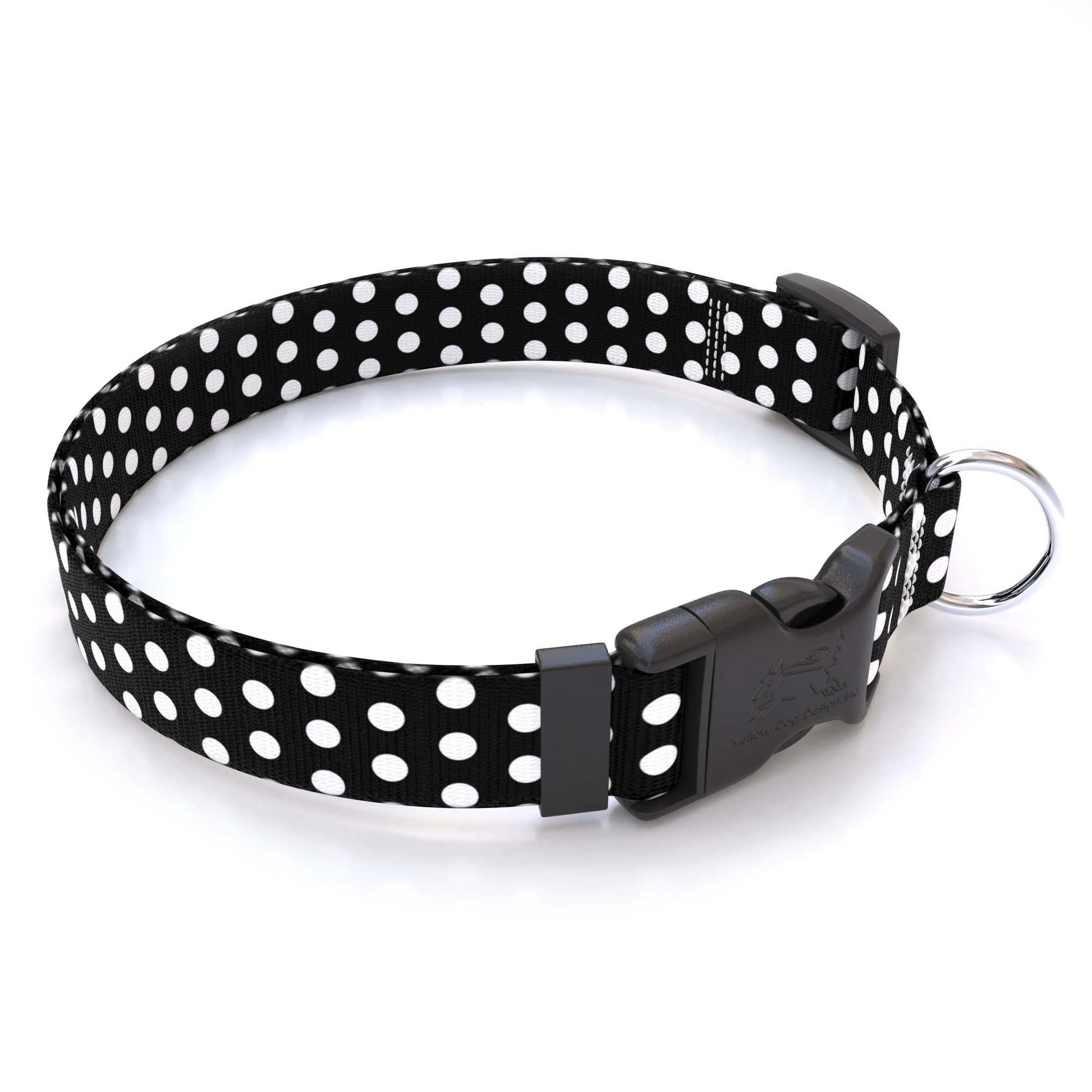 - Polka Dot dog collar design made with high quality, durable polyester webbing ideal for everyday wear and outdoor adventures.