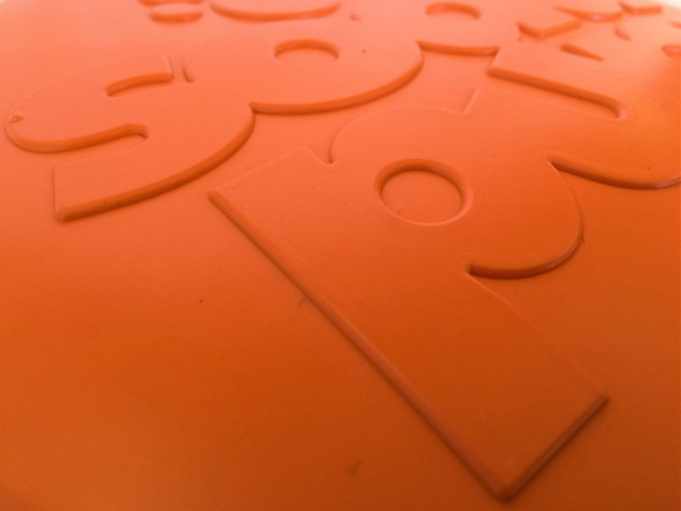 Natural rubber flyer cleverly designed in the shape of an old-fashioned bottle cap for retrieving with your dog. Soft but durable rubber won't harm dogs’ teeth and gums like plastic frisbees.