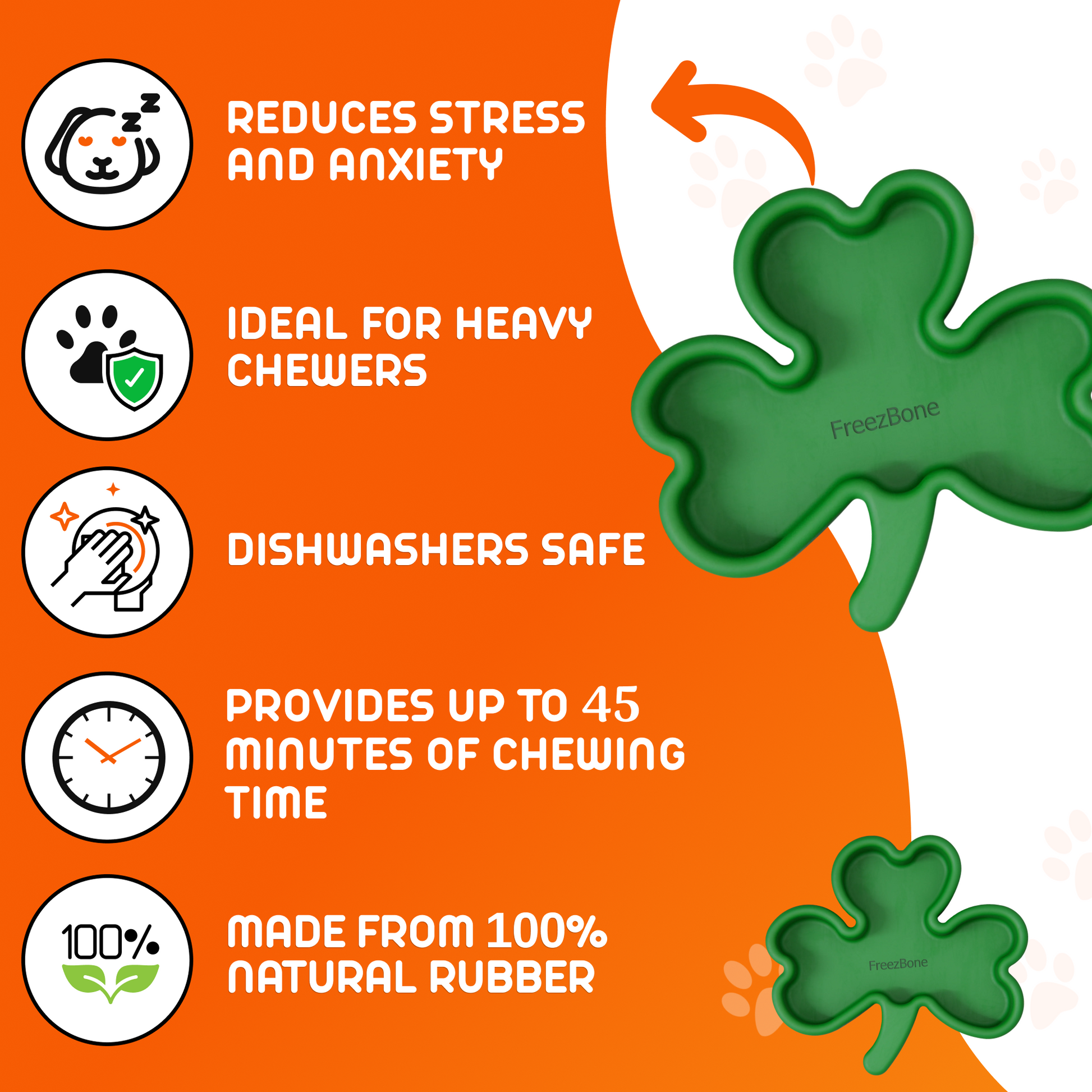 Eco-Friendly and Safe: Made from 100% natural rubber, the FreezShamrock is non-toxic, biodegradable, and safe for your pet. It’s a sustainable choice that’s kind to the planet.