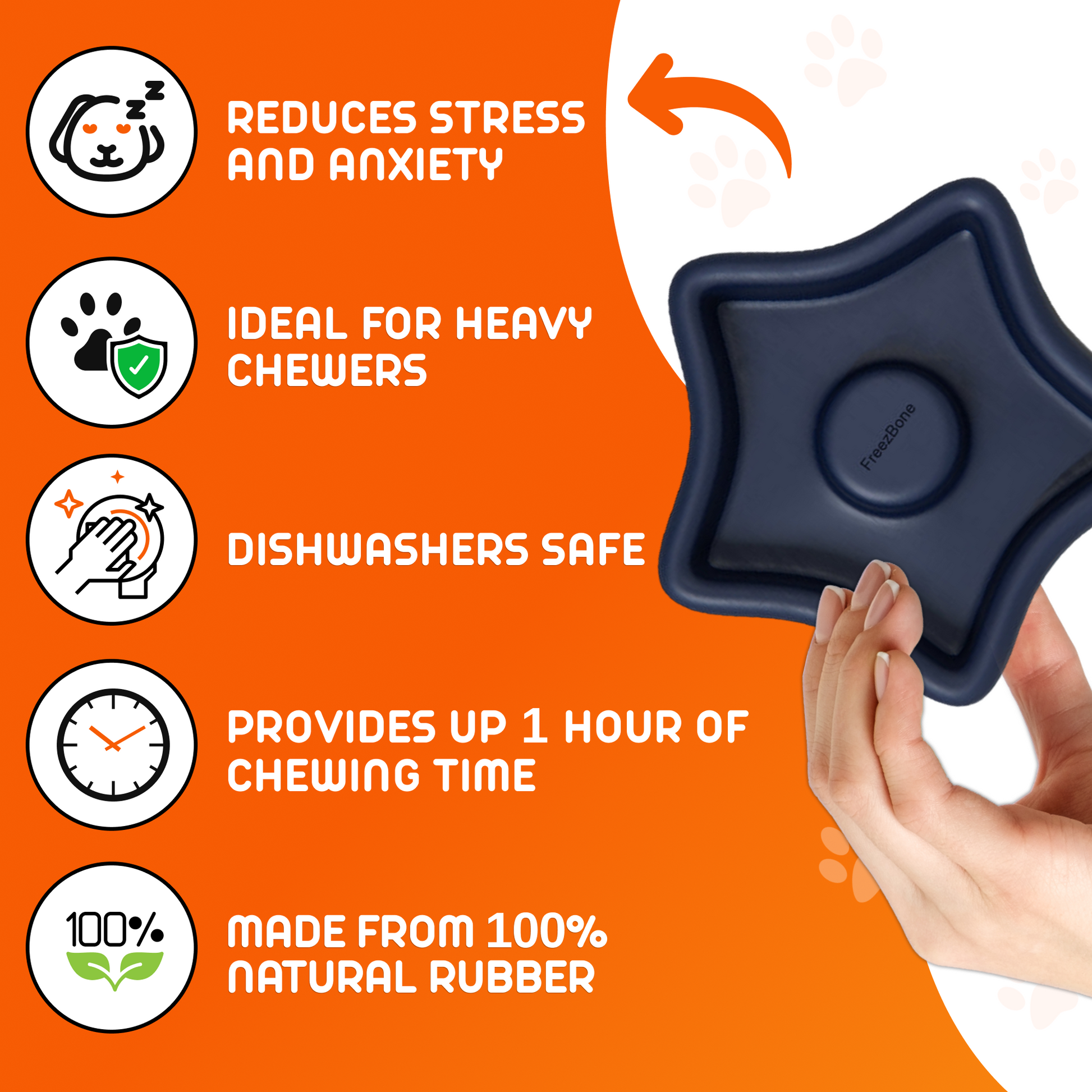 Hassle-Free Maintenance: Keeping the Freezstar clean is a breeze due to its natural rubber composition, making it dishwasher-friendly. Pop it in the dishwasher, refill with your dog's preferred filler, freeze, and it's ready for another round of chewing fun!