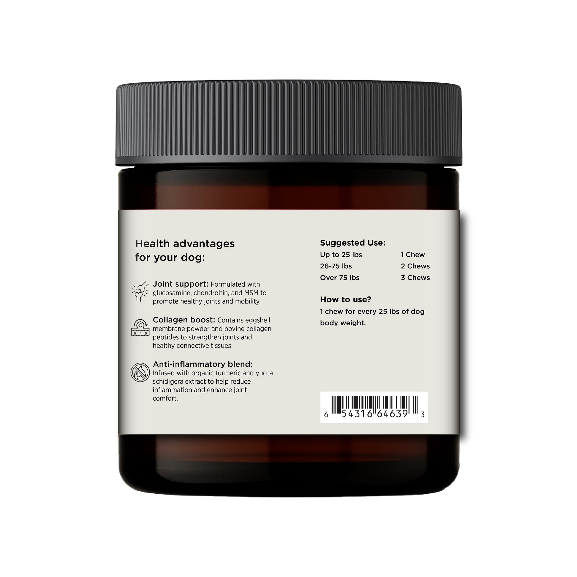 Give your dog 1 chew for every 25 lbs of body weight daily.