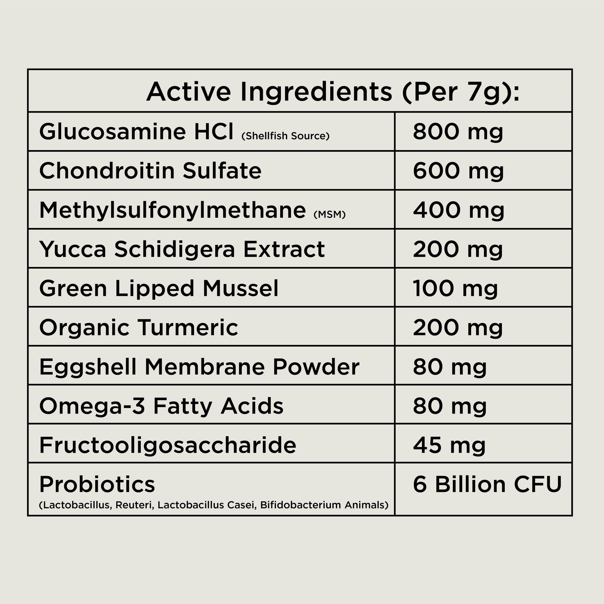 • Glucosamine HCL – 800 mg
