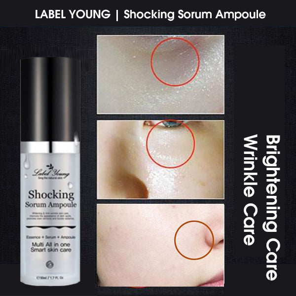 The Label Young Shocking Sorum Ampoule is a multifunctional skincare solution that combines the benefits of an essence, serum, and ampoule in one bottle. Formulated with a blend of black seed complex, black bean, black rice, and black sesame extracts, it aims to enhance skin elasticity, brighten dull skin, and improve the appearance of fine lines and wrinkles.