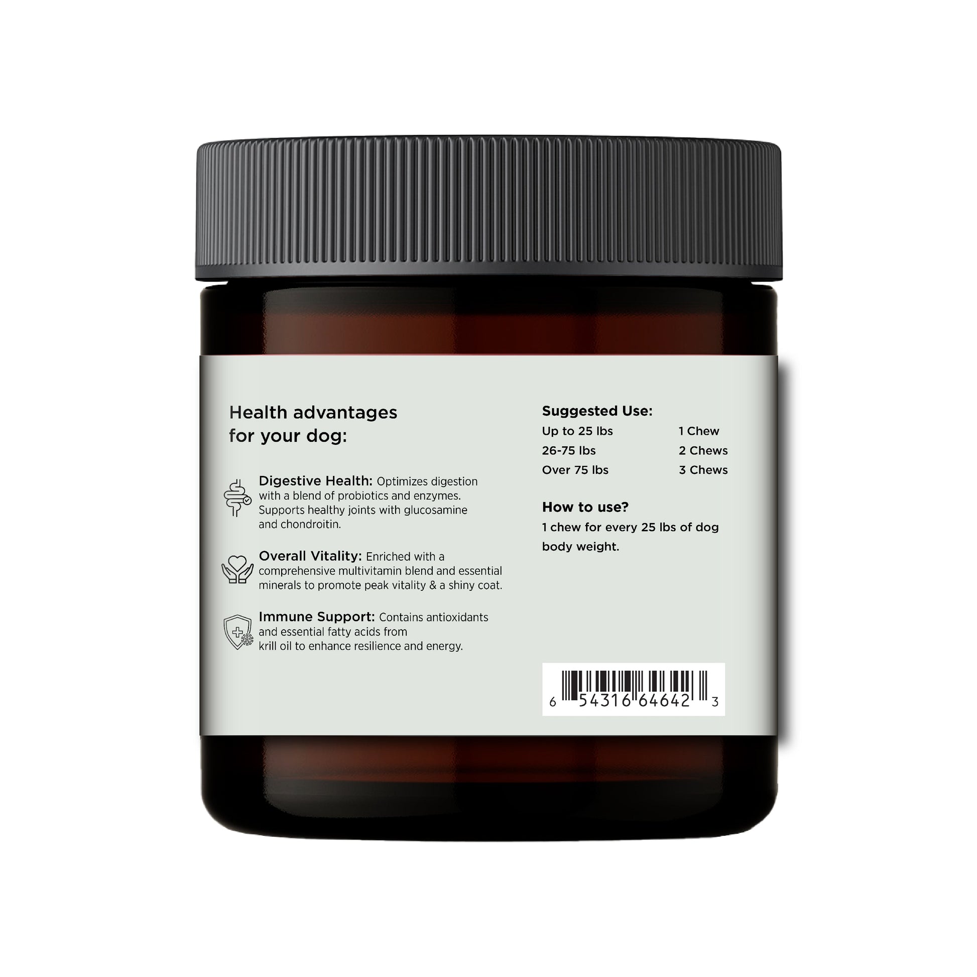 How to Use: Give your dog 1 chew for every 25 lbs of body weight daily.