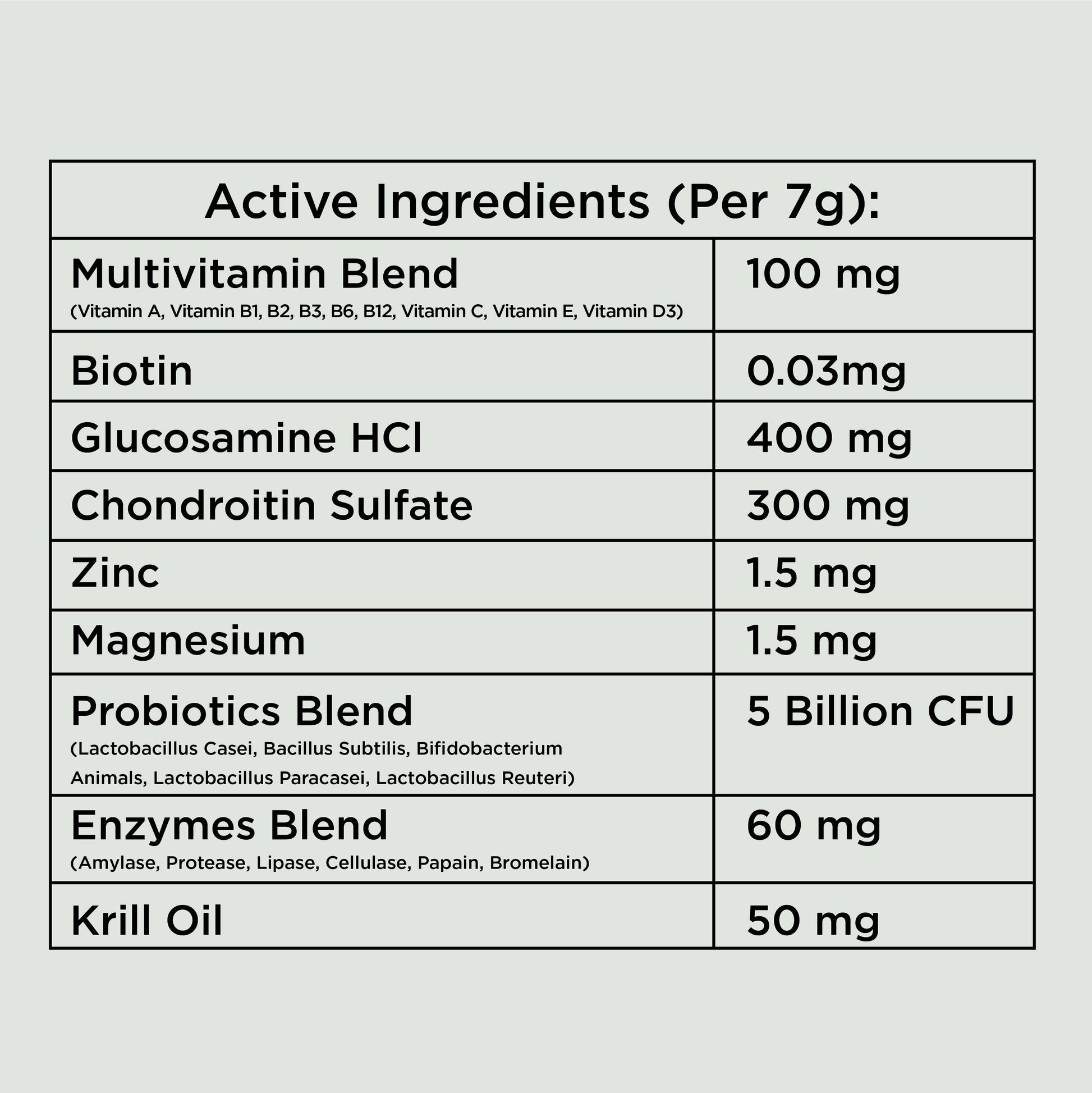 Active Ingredients (per 7g chew):