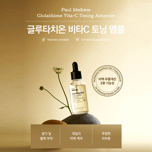 The Paul Medison Glutathione Vita C Toning Ampoule is a K-Beauty serum designed to brighten the complexion, improve skin tone, and address hyperpigmentation
