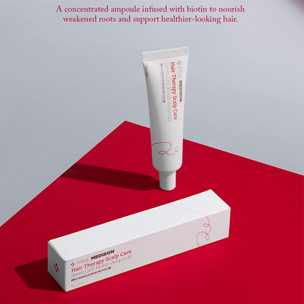 The Paul Medison Hair Therapy Biotin Ampoule - Scalp Care, 30ml is a high-concentration scalp treatment designed to combat hair loss and promote a healthy scalp environment.