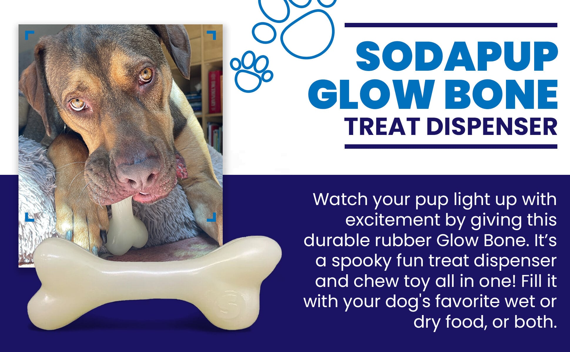 The SodaPup PUP-X Synthetic Rubber Bone is a versatile, ultra-durable dog toy designed for chewing, fetching, and water play. Made from premium FDA-compliant PUP-X synthetic rubber in the USA, this bone-shaped toy combines the classic appeal of a traditional bone with modern durability—it withstands aggressive chewing, floats on water, and features a glow-in-the-dark option for extended playtime in any condition.
