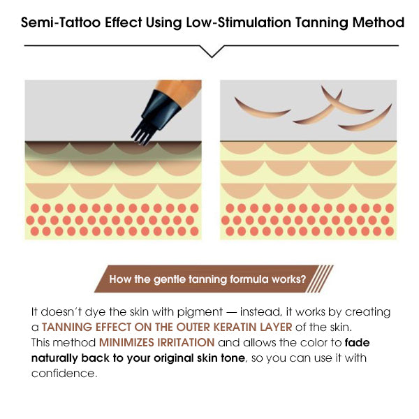 - It uses a safe tanning method so the colour stays on more than a simple brow pencil or powder