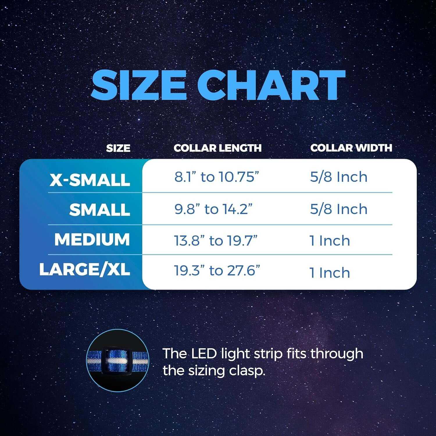 - Large/XL: 19.3" to 27.6" (1" width)