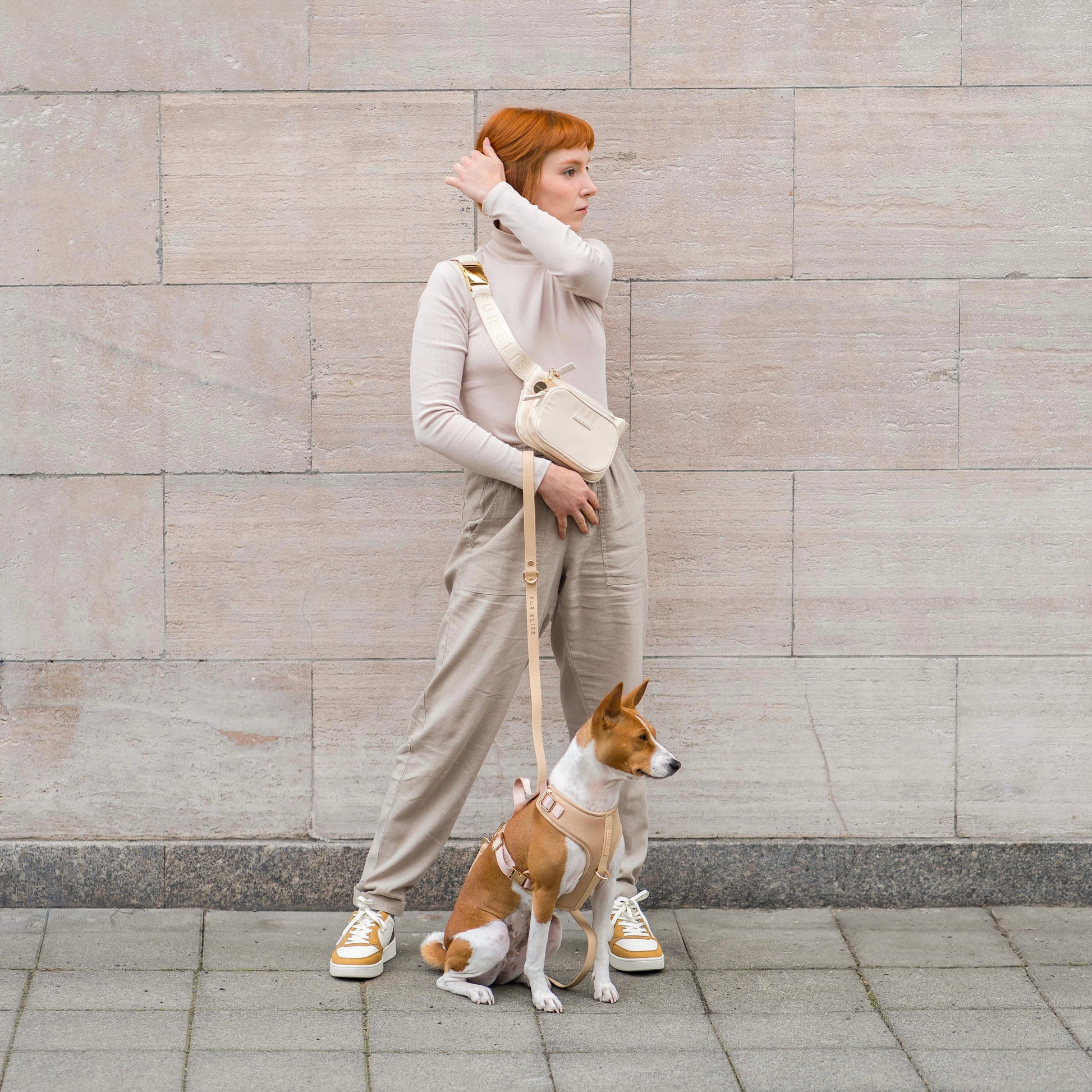 Meet the Essentials Walk Set—where style meets function for every stroll. Our signature collar is built to last, easy to clean, and effortlessly chic with elegant gold accents. Pair it with the classic harness, designed for maximum breathability, unrestricted movement, and added security, featuring a simple strap handle and a low D-ring for better control. Complete the look with the Elise leash, a lightweight yet durable staple that’s perfect for any adventure. And don’t forget the poo pouch, crafted from sturdy Oxford fabric for a sleek, convenient way to carry your pup’s essentials. Rain or shine, this thoughtfully curated set has everything you need for a stylish, stress-free walk with your furry companion.