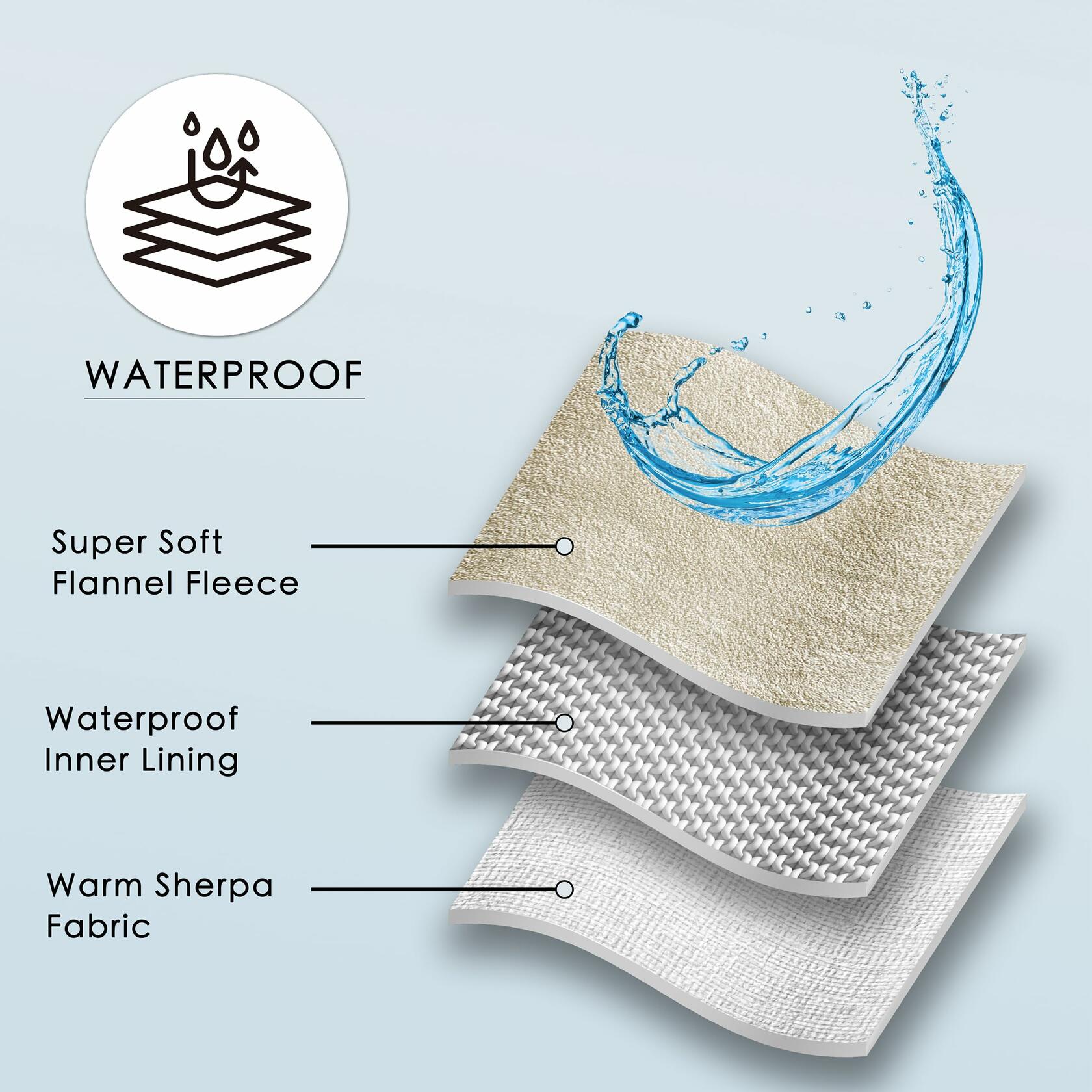 - MULTI-LAYERED, PREMIUM MATERIAL: Our waterproof design features a snow yarn layer that is anti-pilling, anti-shedding, anti-static, safe, anti-odor, and anti-bite, alongside a soft filling layer and a 100% waterproof film with superior absorbency. The bottom layer offers ultimate comfort with a smooth and cozy peach skin material.